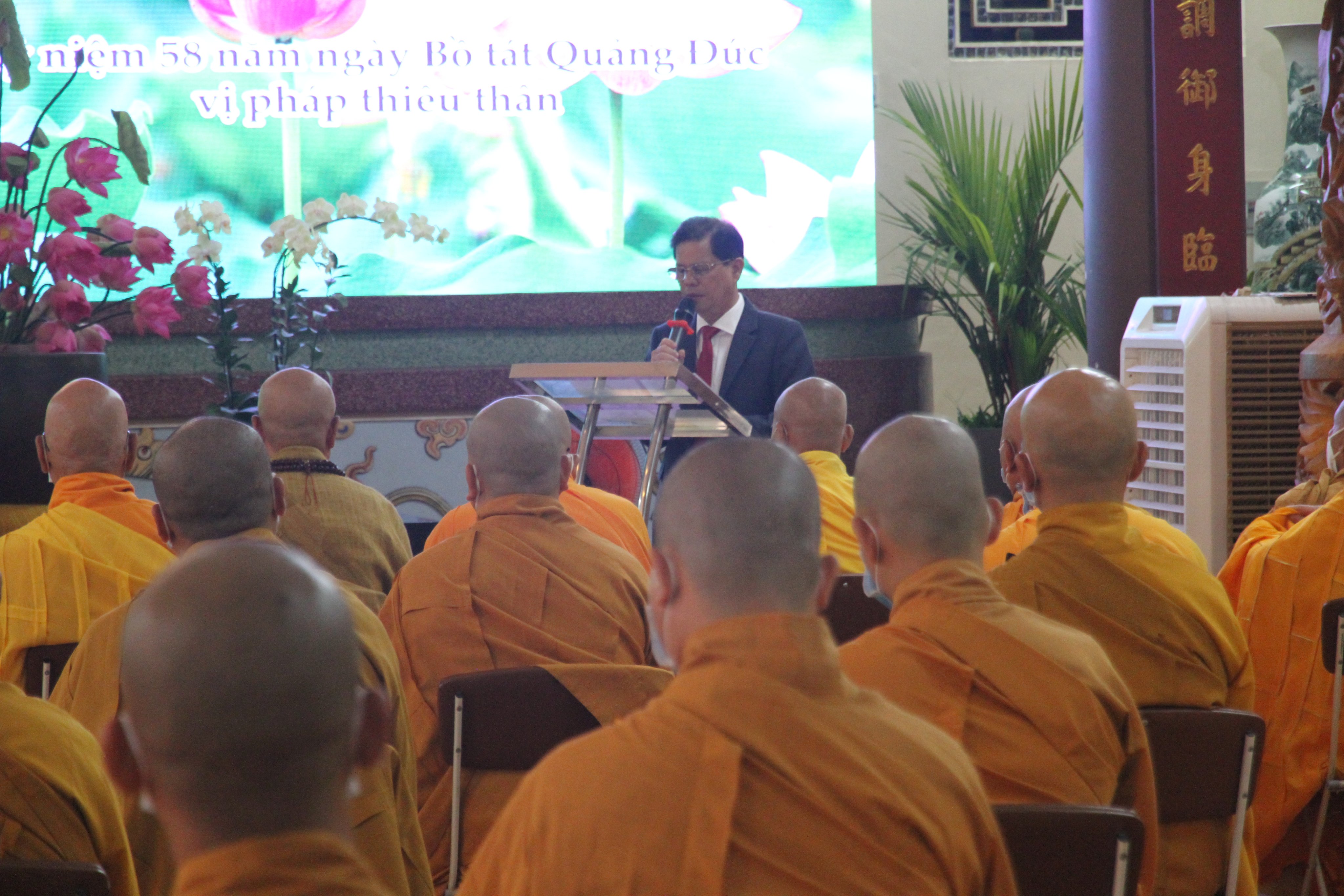 Phát biểu tại buổi lễ, ông Nguyễn Tấn Tuân tuyên dương những thành tựu Phật giáo Khánh Hòa đã đạt được. Ông vô cùng trân trọng những đóng góp của GHPGVN và Tăng Ni, Phật tử tỉnh nhà trong sự phát triển chung của toàn tỉnh nhất là tại cái huyện vùng xâu vùng xa, hải đảo tiền tiêu của Tổ Quốc. Lãnh đạo tỉnh Khánh Hòa sẽ luôn tạo những điều kiện tốt nhất để Phật giáo tiếp tục phát huy thế mạnh, khẳng định vị thế của mình đối với Đất nước trong thời kỳ mới.