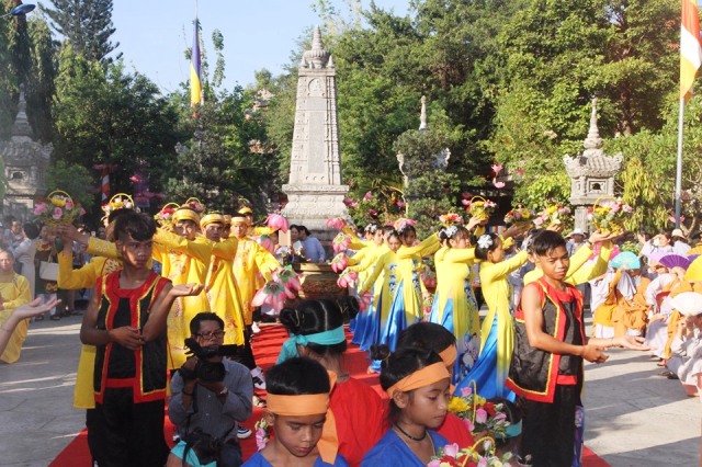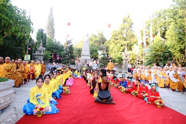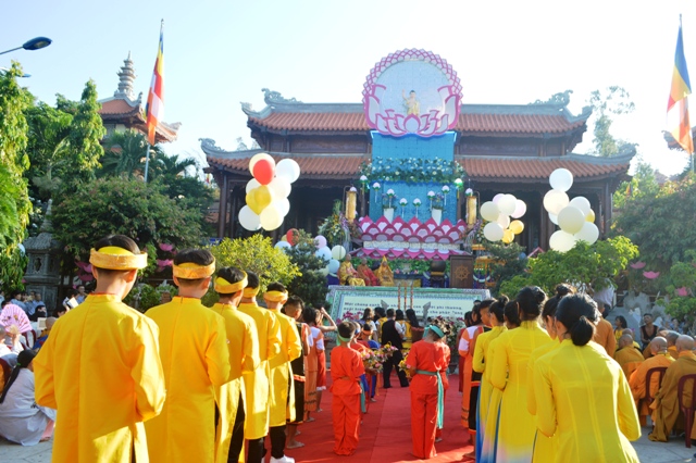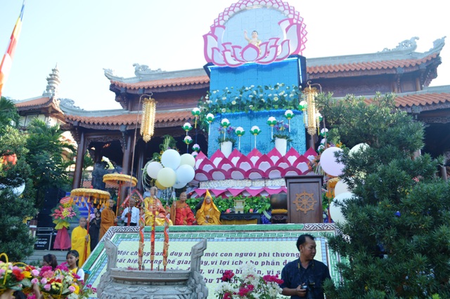 Sau phần lễ hành chánh, các anh chị huynh trưởng và các em GĐPT múa dâng hoa cúng dường Đức Phật đản sanh. Chư tôn đức và quý quan khách cử hành lễ Phật đản. TT.Thích Đức Thành, Phó Trưởng Ban Nghi lễ GHPGVN tỉnh Khánh Hòa xướng lễ cúng dường Phật đản, tụng kinh Khánh đản và cầu nguyện quốc thái dân an, thế giới hòa bình, chúng sinh an lạc. Buổi lễ hết thúc sau phần tuyên dương công đưc các tự viện, cảm tạ của TT.Thích Thiện Phước. Thả bong bóng, chim bồ câu cầu nguyện hòa bình.