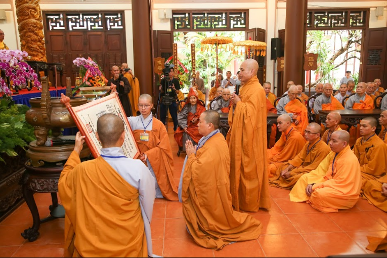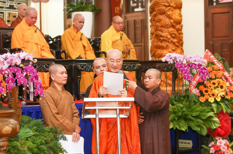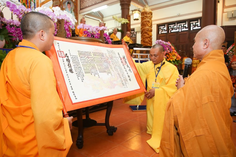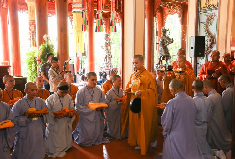 Tại buổi lễ, TT. Thích Tâm Thọ – Công văn Đại giới đàn, đã trang nghiêm cung an chức sự Hội đồng Thập sư Nhị Bộ tại Đại giới đàn Bồ tát Quảng Đức.