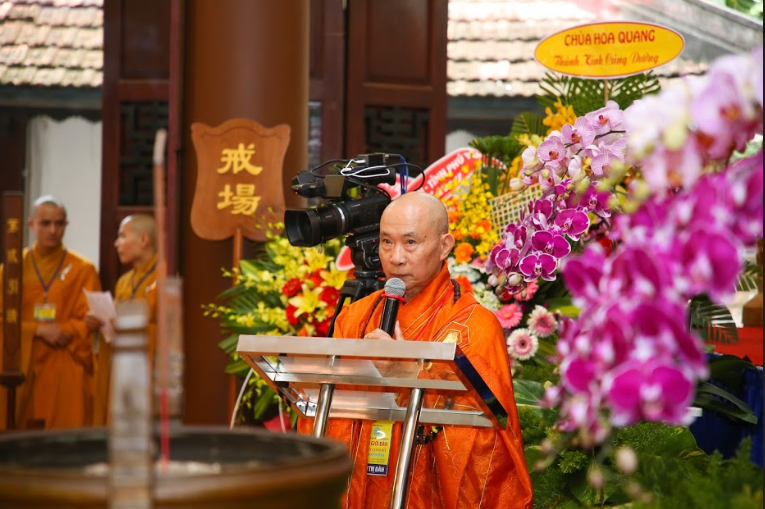 Tiếp đó, HT. Thích Nguyên Quang – Phó Chủ đàn báo cáo tiến trình tổ chức Đại giới đàn Bồ Tát Quảng Đức: Đại giới đàn Bồ tát Quảng Đức có 302 giới tử đủ điều kiện tấn đàn thọ giới Tỳ kheo, Tỳ kheo Ni, Thức Xoa Ma Na, Sa Di, Sa Di Ni sau kỳ khảo hạch và thi tuyển cùng hơn 400 Phật tử đăng ký thọ Thập thiện và Bồ-tát giới tại gia.