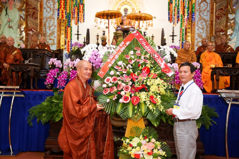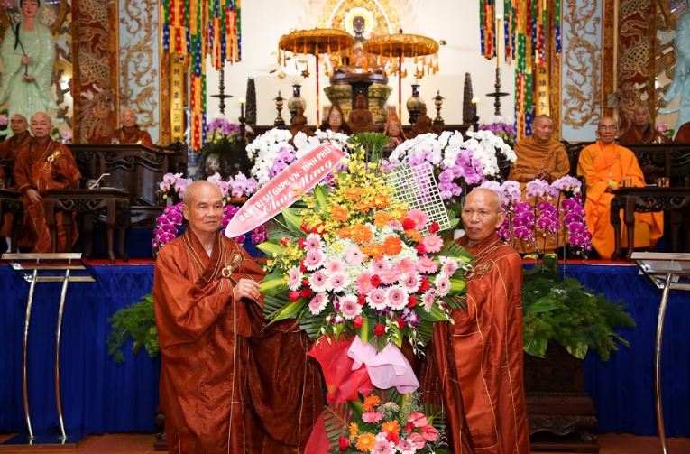 Lễ khai mạc Đại Giới đàn Bồ Tát Quảng Đức đã trân trọng đón nhận những lẵng hoa tươi thắm của Chư tôn Hòa Thượng, BTS các tỉnh bạn và các Ban ngành địa phương như lời cầu chúc Đại Giới đàn được thành tựu viên mãn.