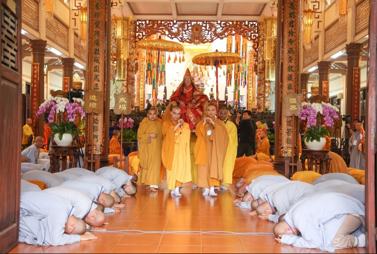 Theo đó, HT. Thích Thiện Duyên được cung thỉnh đương vi Đường đầu Hòa thượng đàn Tỳ-kheo; HT. Thích Minh Thông (TP. Nha Trang) đương vi Tuyên Luật sư; HT. Thích Minh Thông (Tp.HCM) đương vi Yết-ma-a-xà-lê; HT. Thích Quang Nhuận đương vi Giáo thọ A-xà-lê. HT. Thích Tịnh Nghiêm được cung thỉnh đương vi Đường đầu Hòa thượng đàn Sa-di. Và đồng cung thỉnh chư tôn đức làm Tôn chứng Tăng Già: HT. Thích Quảng Thiện, HT. Thích Lưu Hòa, HT. Thích Hải Ấn, HT. Thích Đồng Tiến, HT. Thích Thanh Tùng, HT. Thích Đồng Tịnh, TT. Thích Thiện Tấn.