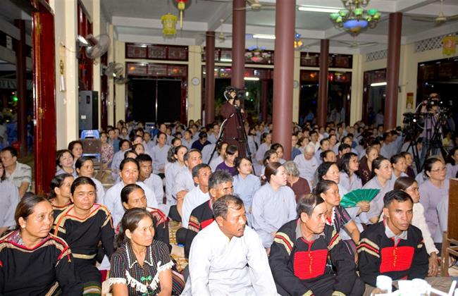 Tham dự buổi Pháp thoại có: TT Thích Giác Nghiêm – Phó trưởng Ban Hoằng Pháp PG tỉnh Khánh Hòa, Trụ trì tịnh xá Ngọc Pháp; TT Thích Tâm Ân – Phó trưởng Ban Hoằng Pháp PG tỉnh Khánh Hòa – Trụ trì chùa Phổ Tịnh; TT Thích Giác Không – Trưởng BTS PG huyện Cam Ranh.