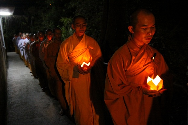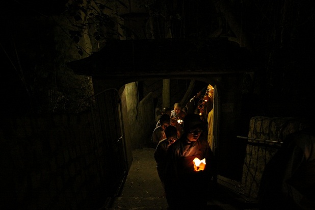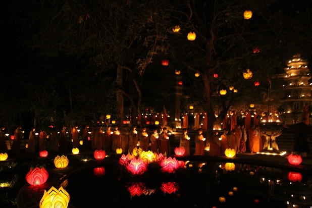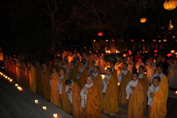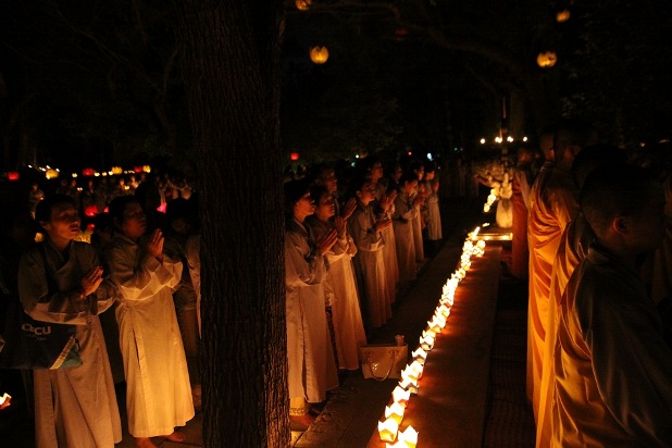 Đặc biệt là lễ thắp nến nhiễu tháp tưởng niệm vào đêm mồng 9/5 của Tăng Ni sinh các khoá trường TCPHKH. Con đường từ chánh điện chùa Long Sơn lên đến tháp phần của Hòa Thượng được thắp sáng bằng những ngọn nến lung linh, thành kính. Đại chúng bước đi trong tiếng niệm Phật trầm hùng. Trong bóng tối mênh mông của khu rừng, những ngọn nến mong manh chợt lay chợt động như có như không theo cơn gió lao xao đầu hạ thổi về. Ngọn nến như không muốn xua đi bóng tối mà hòa điệu cùng bóng tối để vẽ nên một khung cảnh thiêng liêng, tâm linh, tịch mịch giữa rừng khuya. Tâm của mọi người như được cộng thông với nhau qua tiếng niệm Phật, đưa quá khứ và hiện tại trở về trong một phút giây trầm tưởng.
