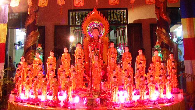 Buổi tối, tịnh xá Ngọc Pháp tổ chức đêm Hoa đăng với hàng nghìn ngọn đèn kính mừng lễ Vía đức Phật A Di Đà cầu nguyện quốc thái dân an, cầu âm siêu dương thái, pháp giới chúng sinh tình giữ vô tình đồng thành Phật đạo.