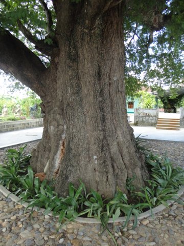 Đặc biệt, trước sân chùa có  cây me cổ thụ cao sừng sững trên 20 mét, gốc to chu vi gốc me hơn 8 mét, tán lá cây rất rộng, có trái quanh năm. Cây me có nhiều bọng rỗng trên các nhánh nên trong thời Việt Minh chống Pháp người ta thường dùng các bọng cây này làm hộp thư bí mật. Năm 1946 dưới gốc me còn lập một lò rèn để đúc kiếm Lê Trung Đình. Qua cổng tam quan, bên lối gạch vào chùa là hai cây sứ được trồng từ thời Tổ Phước Tường về trụ trì cách nay cũng đã gần 100 năm.