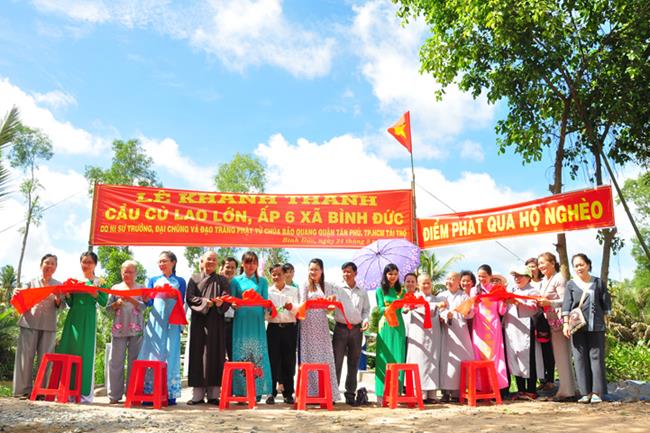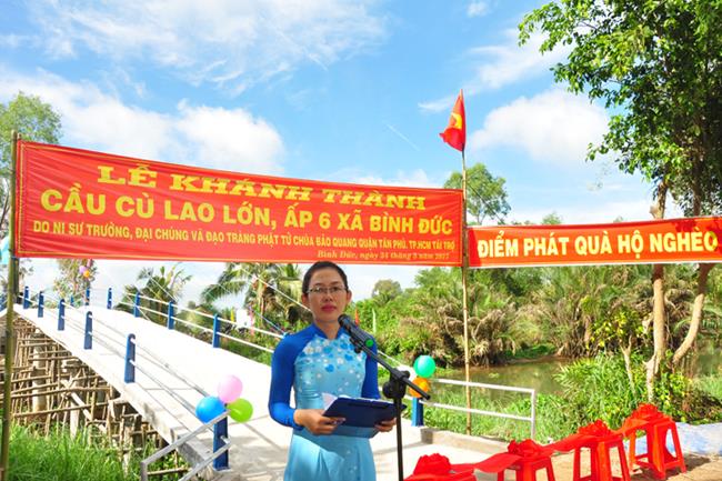 Hoà thượng cảm thông sâu sắc khó khăn của bà con địa phương, đồng thời tán dương Ni trưởng trụ trì chùa Bảo Quang, quận Tân Phú cùng đạo tràng Phật tử và bà con tại địa phương cùng nhau nỗ lực để xây dựng cây cầu bê tông kiên cố, an toàn cho bà con đi lại. Đây cũng là món quà của Phật giáo gửi đến địa phương, trong đó có những Phật tử và nhiều người cảm mến đạo Phật. Cuối lời, Hoà thượng cảm ơn chính quyền đã tạo điều kiện thuận lợi cho Phật giáo đóng góp xây dựng công trình ý nghĩa này.