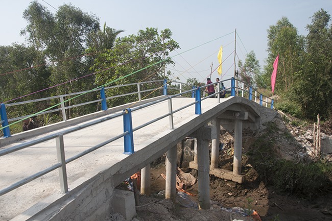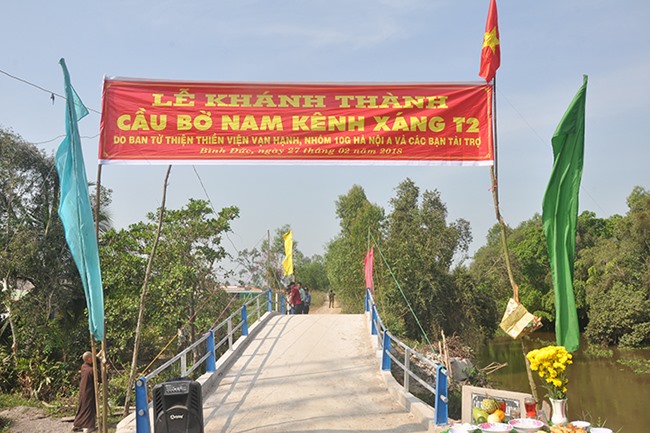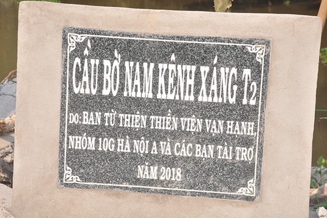 Được biết, cây cầu được xây dựng bằng bê tông cốt thép, chiều dài 20 m, ngang 2,6 m, tổng kinh phí 120 triệu đồng do tập thể Lớp 10 G Hà Nội tài trợ.