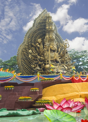 Và hôm nay, pho tượng Bồ tát Quán Thế Âm Thiên thủ Thiên nhãn tiếp tục lập kỷ lục. Thánh tượng có chiều cao 36m, đường kính 18m, an vị trên tòa sen cao 2m. Trên thân tượng có ngàn bàn tay, ngàn con mắt. Những cánh tay nhỏ được sắp xếp như vầng hào quang tỏa sáng.