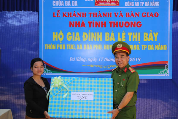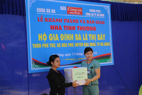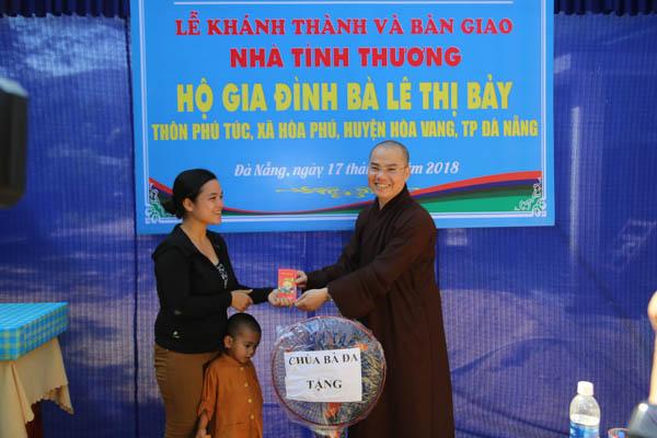 Tại buổi lễ, chùa Bà Đa và các đơn vị cũng đã tặng quà chúc mừng gia đình chị Bảy từ nay đã có ngôi nhà kiên cố khi mùa mưa bão về.