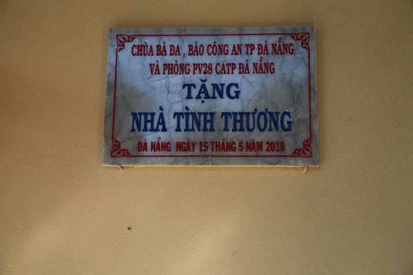 Nhằm chia sẻ với những khó khăn của gia đình, chùa Bà Đa đã phối hợp với báo Công an Tp, phòng PV 28 và các cơ quan ban ngành, các cá nhân hỗ trợ xây dựng ngôi nhà tình nghĩa với tổng trị giá hơn 100 triệu đồng để mẹ con chị Bảy có nơi ở an toàn, yên tâm làm ăn nuôi 2 con nhỏ.