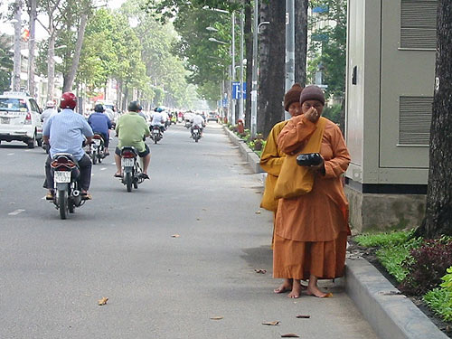 NGƯỜI ĐỐI THOẠI: Xem thế thì đối với Việt Nam, việc khất thực thật sự không thể thực hiện được, vì làm thế như đạo hữu nói, “tạo môi trường cho sư giả”.