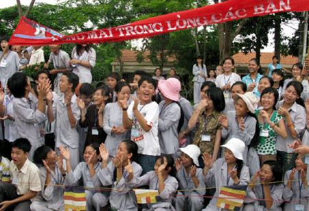 Giờ này gần 3.200 em học sinh, sinh viên, thanh niên cũng vừa kết thuc thời tĩnh tọa tối và đang tuần tự đi về các khu sinh hoạt để bắt đầu ngủ. Tiếng loa phát thanh vang lên những âm điệu nhẹ nhàng và từ tốn của Ban Tổ chức nhắc nhở các em giữ mình trong im lặng, không làm ồn ào gây phiền hà đến xung quanh.