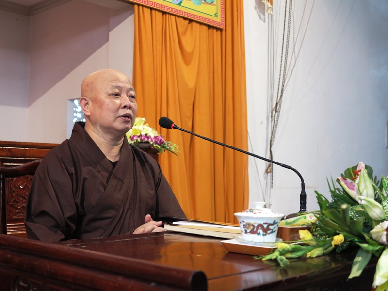 TT. Thích Thiện Thống đã triển khai về tầm quan trọng của môn học Hành chánh Giáo Hội đối với Tăng Ni học viên, đặc biệt là người Trụ trì trong việc soạn thảo, xử lý các văn bản phục vụ công tác Phật sự tại Tự viện của mình.