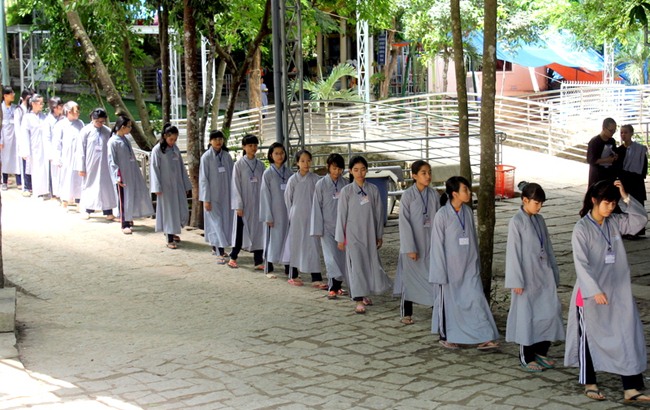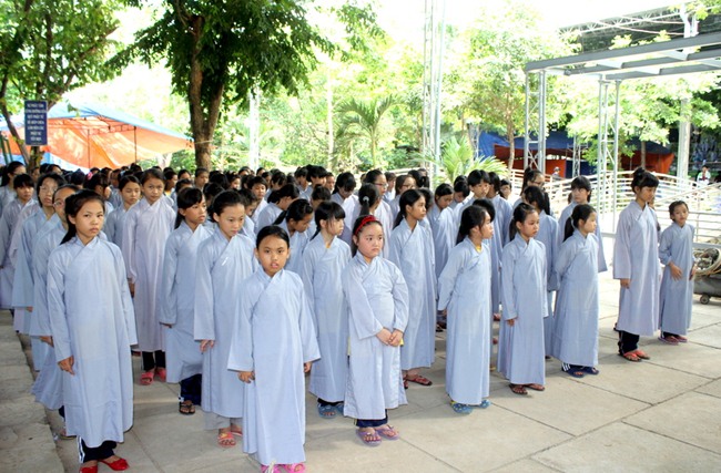 Dưới sự chứng minh của Mười phương Chư Phật, từ nay các em đã chính thức trở thành người đệ tử Phật, thọ nhận tam quy ngũ giới để gìn giữ suốt đời.