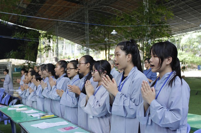 Cuối cùng, Thầy Khải Thành cho các em đứng dậy, hô thật to 3 khẩu hiệu, rồi chắp tay nghiêm trang trước Phật cùng nhau phát nguyện bỏ game, và trở thành người chiến sĩ kiên cường xông pha vào mặt trận ảo cứu lấy tâm hồn của bao nhiêu người đang mê đắm trong đó: