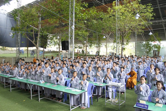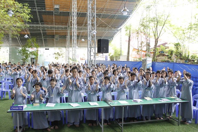 Nên việc sa vào thế giới ảo, không ngờ các con cũng đang từng ngày làm mất nước mà không hay biết. Tầm quan trọng của bài học này là như vậy, là thứ nhất giúp các con nhận thức được sự nguy hại của thế giới ảo, và thứ hai là giúp các con trở thành một chiến sĩ. Các con có biết vì sao Sư Phụ khi tổ chức khóa học hè này lại đưa ra một số tiêu chí về học lực, hạnh kiểm cho các con không? Bởi vì Sư Phụ và Quý Thầy Cô luôn gửi gắm vào các con rất nhiều hy vọng. Các con có học lực giỏi, nghĩa là các con có tố chất thông minh để dễ dàng tiếp thu những bài giáo lý Sư Phụ và Quý Thầy Cô dạy trong thời gian 3 tuần ngắn ngủi ở đây. Các con có hạnh kiểm tốt, nghĩa là các con có một nền tảng đạo đức để sau khi hoàn thành xong khóa học này, khi về lại với gia đình, trường lớp, các con có trách nhiệm như những hạt nhân nòng cốt, như những chiến sĩ để lôi kéo, thuyết phục lại những bạn chưa tốt, những bạn nghiện game, nghiện facebook… của mình về với thế giới thật này, để các bạn trở thành người có ích cho xã hội. Các con là những chiến sĩ không cầm súng, không mặc quân phục. Kẻ thù của những chiến sĩ này là gì? Là thế giới ảo. Những chiến sĩ này phải bảo vệ ai? Bảo vệ tâm hồn những người bạn của mình khỏi thế giới ảo. Mà các con không ngờ, làm được vậy cũng chính là đang bảo vệ đất nước mình.