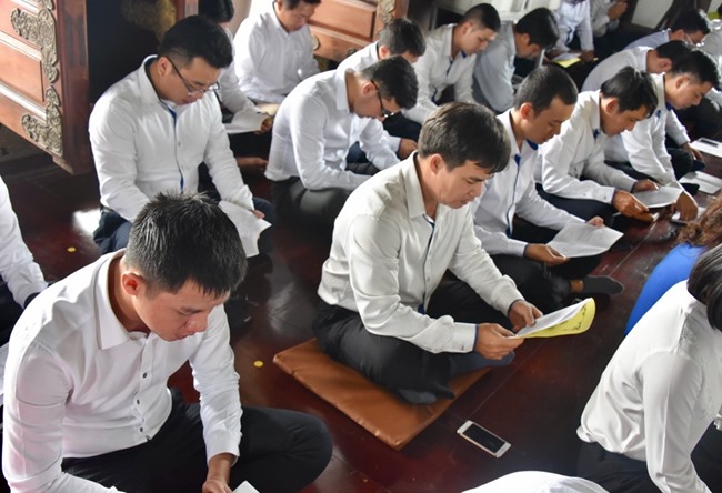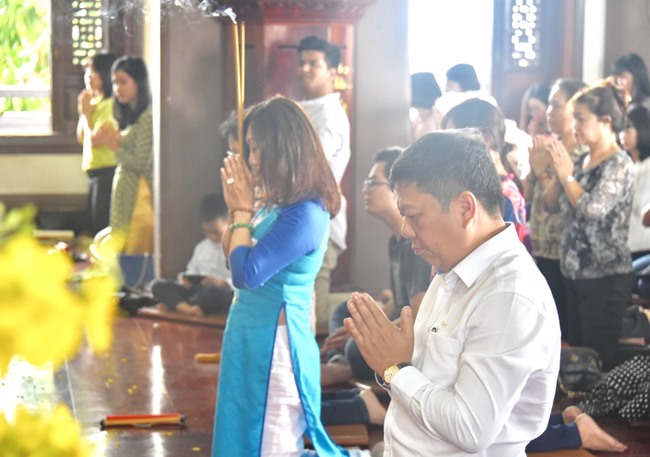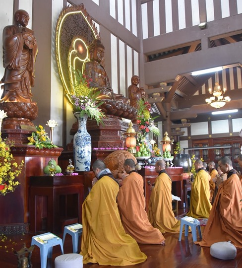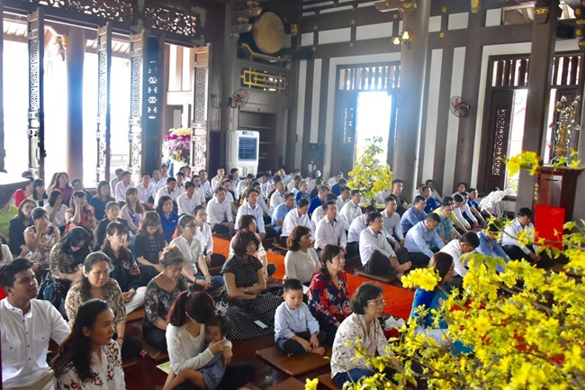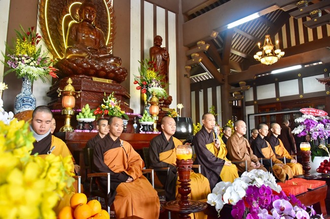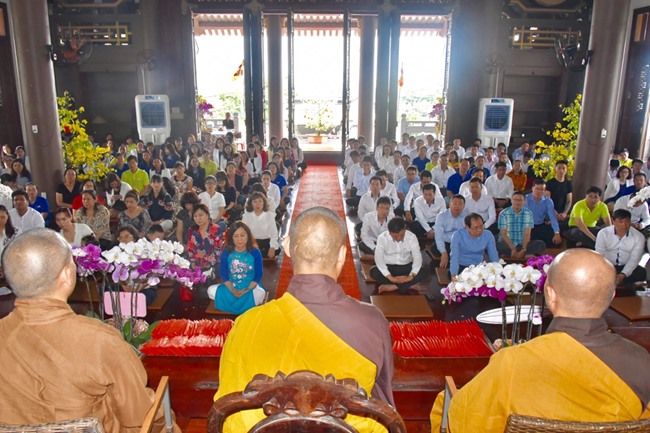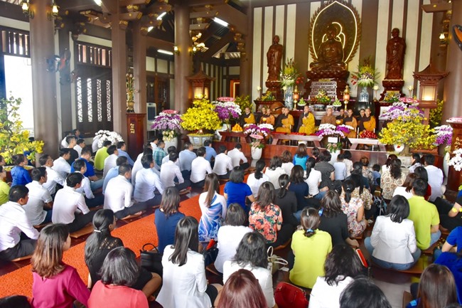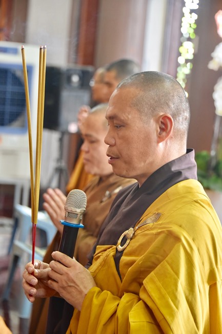 Sau lời khai thị của Thầy, đại chúng cùng thọ trì Kinh Phước Đức và dâng sớ cầu an, khoá lễ do Thầy Thích Viên Nghiêm chủ xướng.