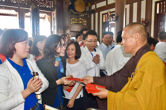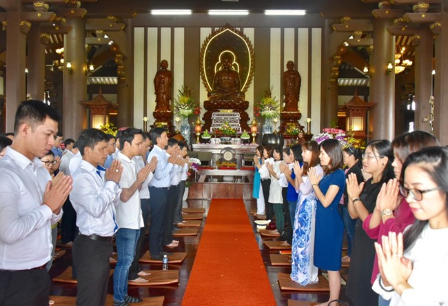 Trong không khí trang nghiêm của buổi lễ, Thầy Viện chủ có gần 30 phút nói về ý nghĩa Lễ Cầu an theo tinh thần Đức Phật dạy cũng như tầm quan trọng của người làm ngân hàng trong phát triển kinh tế xã hội của đất nước.