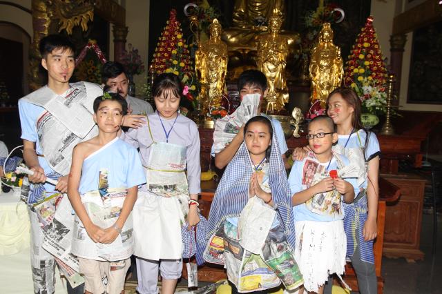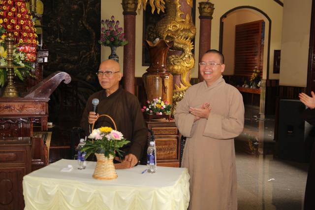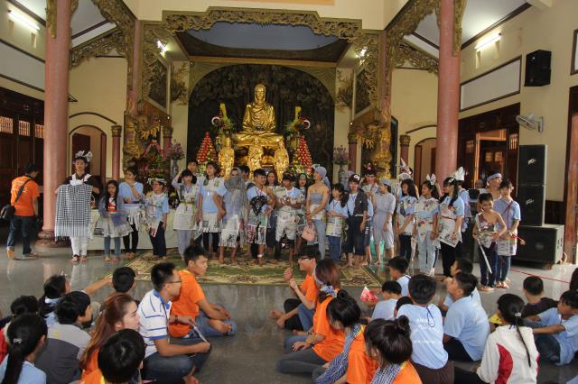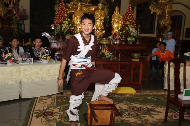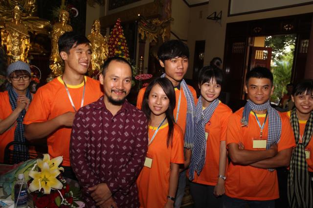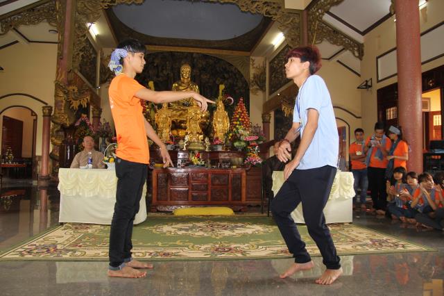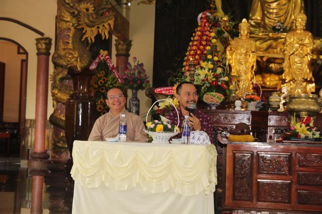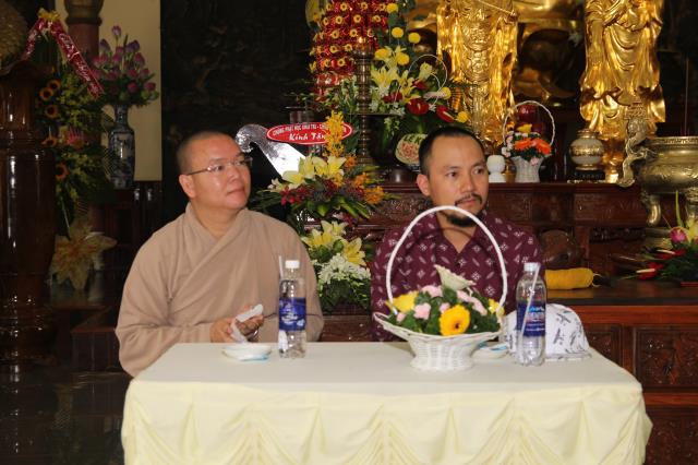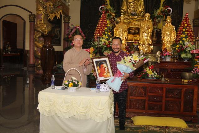 ĐĐ. Thích Hải Trung, trưởng BTC khóa tu đã tặng cho diễn viên, Rapper Mr. D bó hoa tươi thắm cùng bức tượng Phật kỷ niệm khóa tu Thiện Tài Đồng Tử lần thứ 7 này.