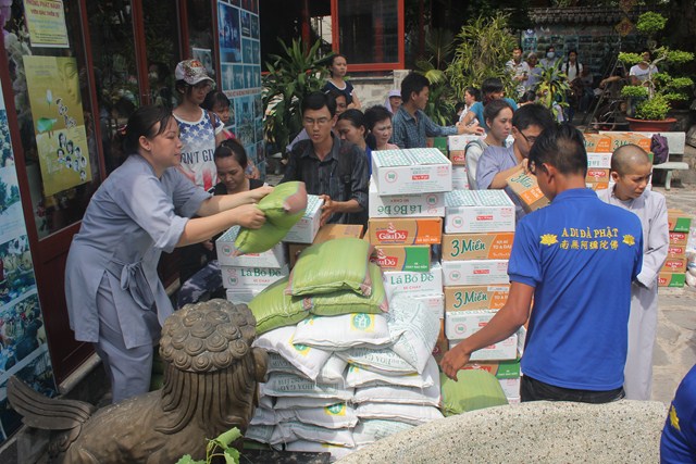 Từ sáng sớm các tu sinh đã có mặt tại Tu viện Quan Âm-Q.Phú Nhuận để vận chuyển vật phẩm từ thiện. Trong cái mờ ảo của buổi sương mai nhưng trên nét mặt của mỗi người đều thể hiện sự phấn khởi, lòng nao nức khi được tham dự khóa tu.
