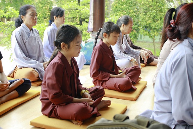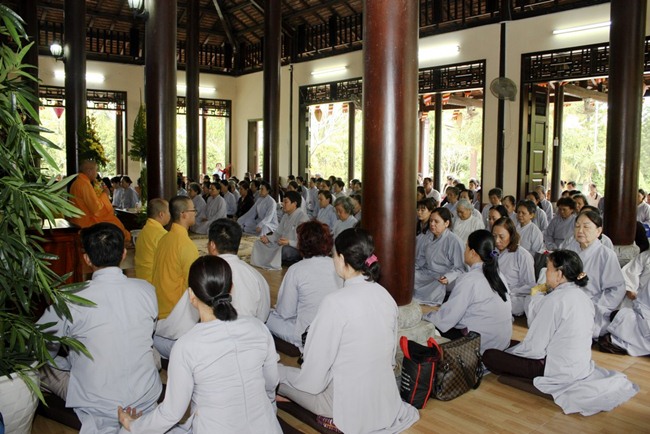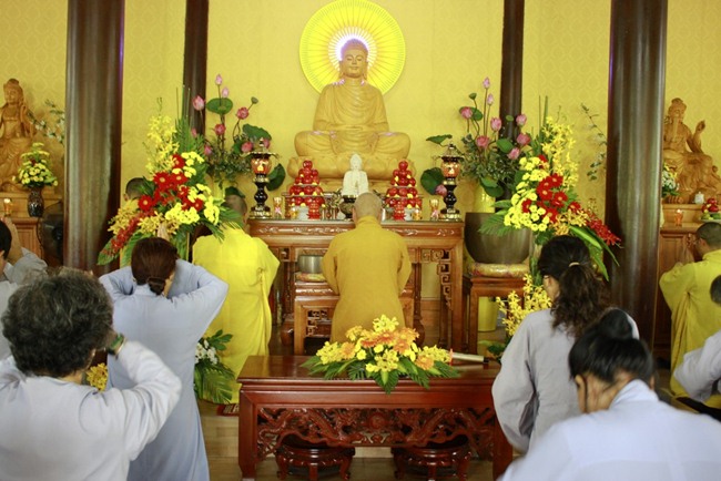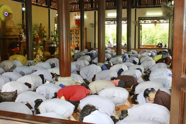 Khép lại chương trình buổi sáng, đại chúng thọ trai và nghỉ trưa. Đến đầu giờ chiều, tiếp nối chương trình là thời khóa thiền lạy Phật.