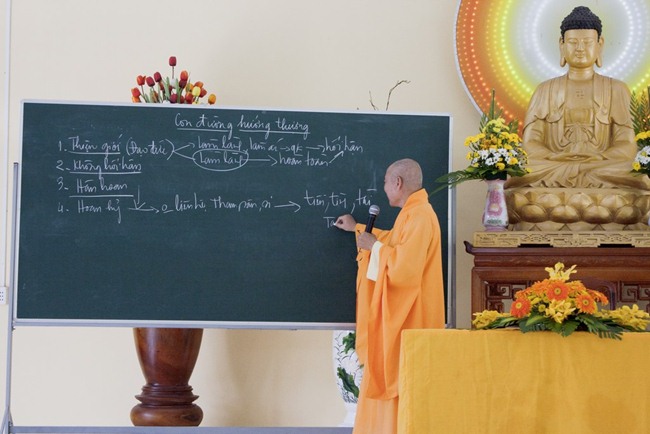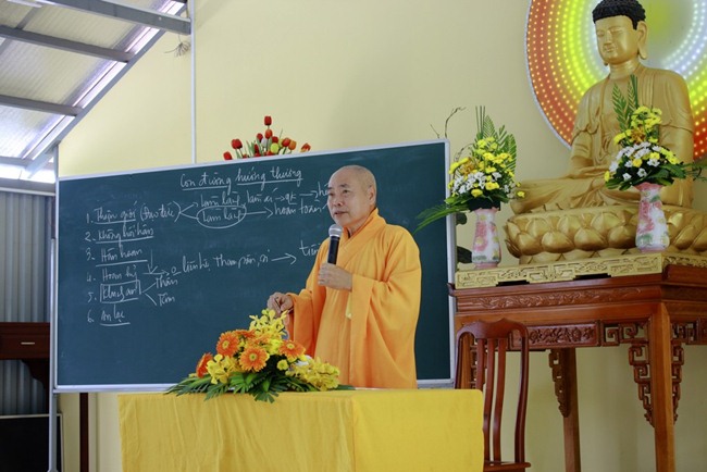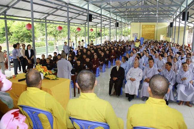 Tại đây, các Phật tử được Hòa thượng hướng dẫn cặn kẽ phương pháp thực hành thiền lạy Phật trong chánh niệm.