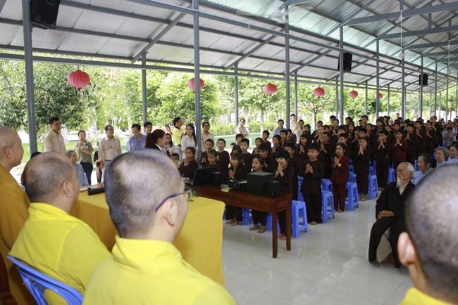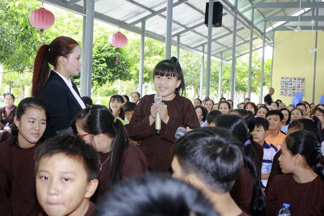 Đến phần chương trình giao lưu cùng các em thanh thiếu nhi Phật tử. Ở đây, đại chúng đã nghe các em đọc thuộc lòng gần 20 bài kệ và các em cũng đã hát đồng ca bài “Niềm An Vui” để gửi tặng đến hàng Phật tử tham dự.