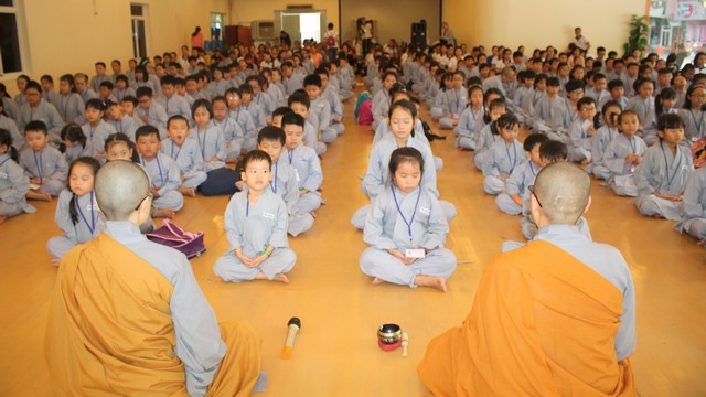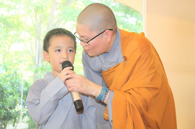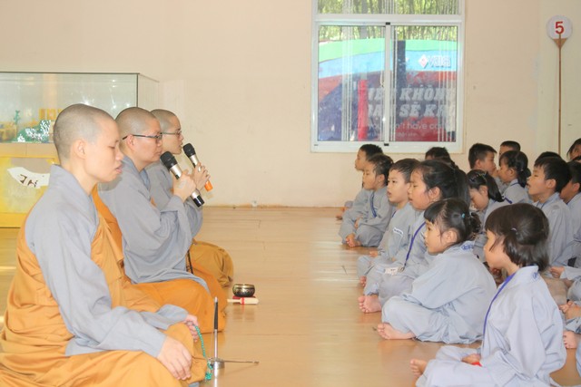 Sau thời khóa tọa thiền, trì chú, tu sinh hào hứng tham gia trả lời các câu hỏi về: cách tự bảo vệ tính mạng, nhận biết người lạ, không dùng vật sắc nhọn khi vui đùa v.v.