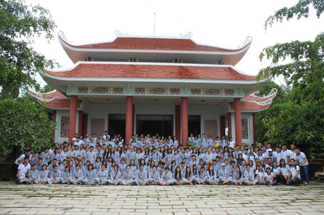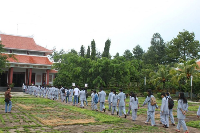 Sau khi hoàn tất các thủ tục, quý vị trong Ban tổ chức, các bạn tình nguyện viên cùng hơn 300 tu sinh đã lên xe thẳng tiến về Bến Tre. Điểm đến đầu tiên của đoàn là Chùa Từ Huệ ở Bến Tre.