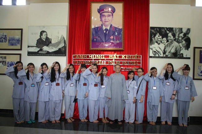 Sau giây phút thiêng liêng, xúc động trước hương án thờ Nữ tướng Nguyễn Thị Định, các em tu sinh được hướng dẫn tham quan khu tưởng niệm, được xem qua những hình ảnh, những tư liệu về cuộc đời hoạt động cách mạng của Nữ tướng. Tấm gương chiến đấu và phục vụ nhân dân, phục vụ đất nước của Nữ tướng Nguyễn Thị Định đã khơi dậy trong các em lòng cảm phục, kính yêu nữ tướng và lòng biết ơn sâu sắc.