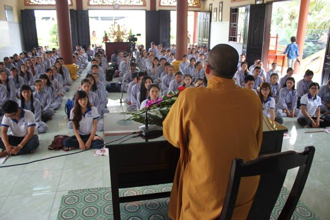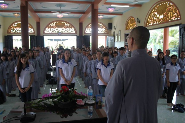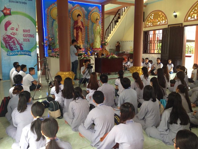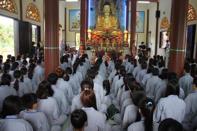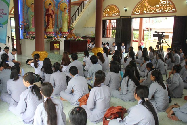 Tại đây, các em tu sinh đã được nghe Đại Đức Thích Long Bình (trụ trì của chùa) thuyết giảng về chủ đề “Nhớ Gương Xưa” và sau đó là phần hỏi – đáp về chủ đề vừa nghe do chính thầy trụ trì trả lời và giảng giải cho các em.