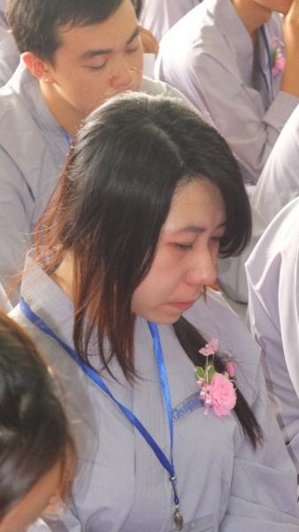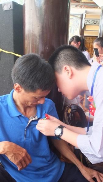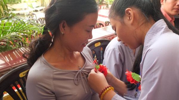 Sự thiếu thốn tình cảm của mẹ thì những đứa trẻ mồ côi như em mới hiểu được. Em mong rằng những bạn tham gia khóa tu này, mãi vui mừng – hạnh phúc trọn vẹn khi còn có cha mẹ từng ngày. Vì các bạn vẫn được cài hoa hồng đỏ! ”.