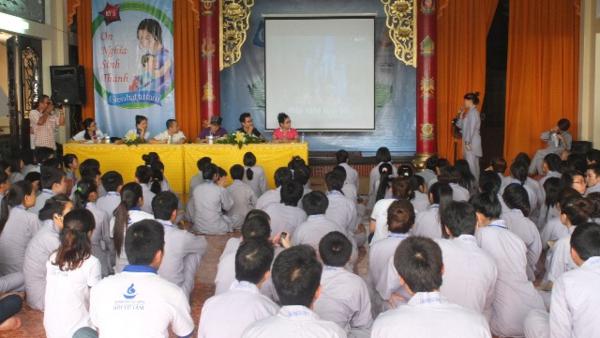Đến với khóa tu kì này có điều đặc biệt hơn, đó chính là chủ đề Ơn Nghĩa Sinh Thành khi ngày Lễ Vu Lan đang cận kề, hơn 300 bạn trẻ đến từ nhiều nơi khác nhau đã quy tụ về đây để lắng lòng tri ân với đấng sinh thành.