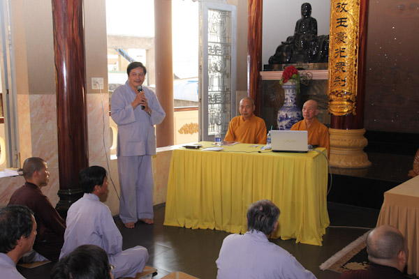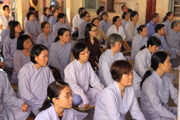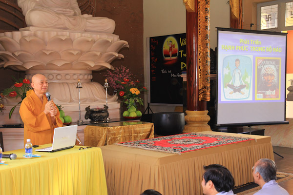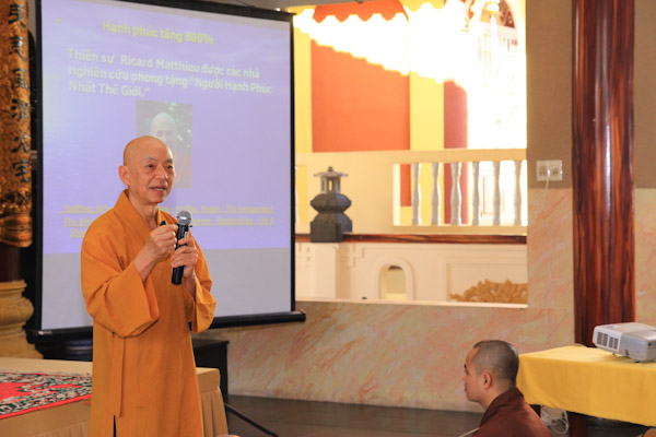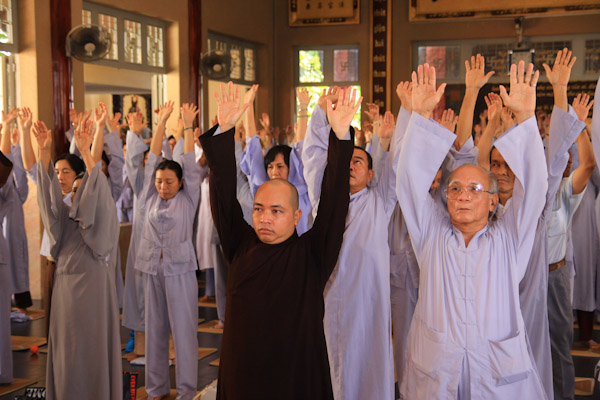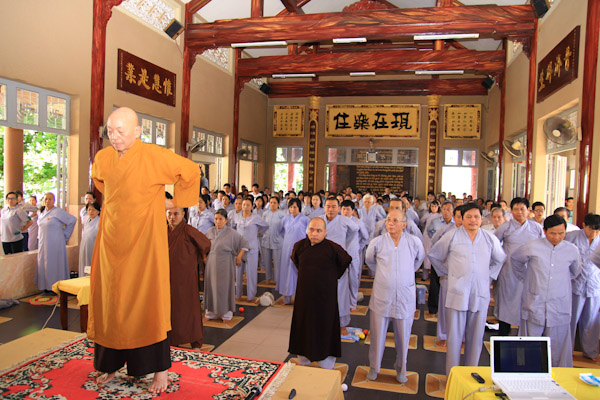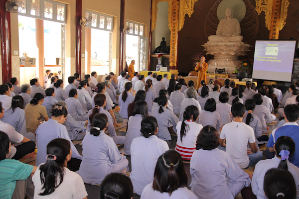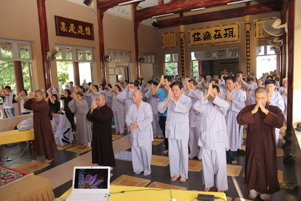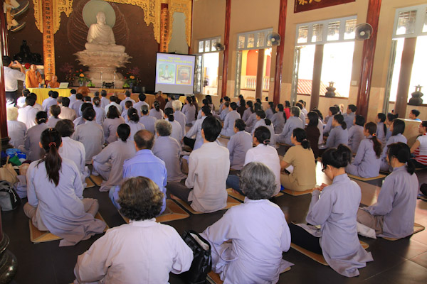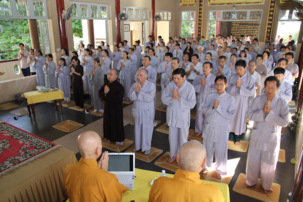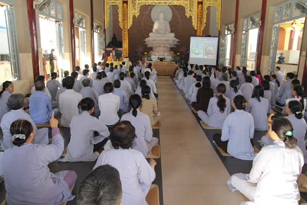 Hơn 300 thiền sinh đại diện của các ban ngành, đạo tràng tu học và sinh hoạt tại Chùa Từ Tân đã đến tham dự khoa tu học do HT. Thích Phụng Sơn trưc tiếp hướng dẫn. Nội dung hành trì tu tập gồm (Pháp thoại “Phát triển hạnh phúc trong não bộ”, Thực hành thiền Từ Bi Quán với các phương thức sinh động, Phương pháp lạy Phật khí công và tập thế chánh định, Thiền buông thư).