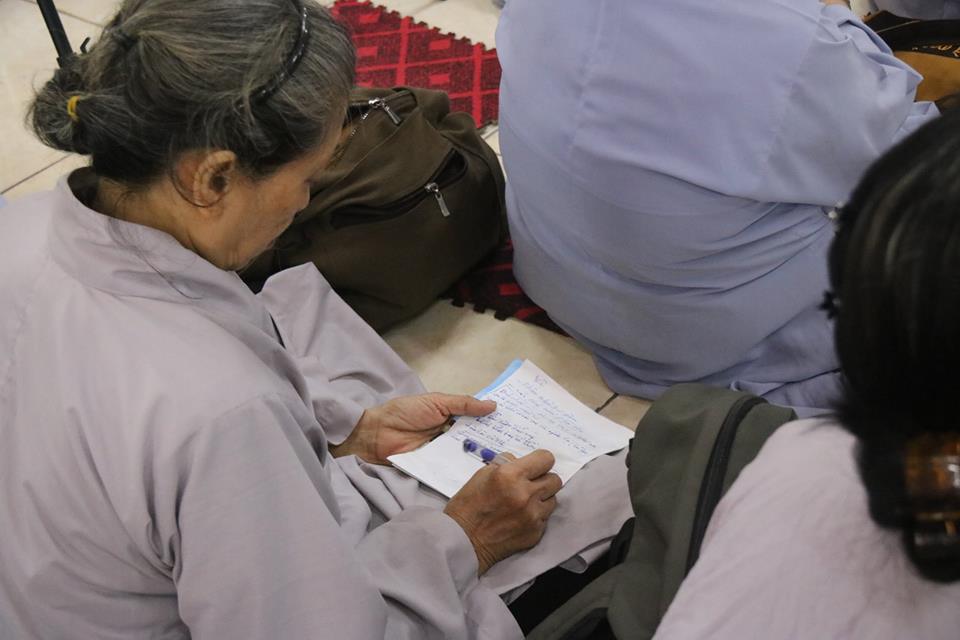 Mở đầu cho khóa tu tháng 9 là thời khóa niệm danh hiệu Quán Thế Âm do chúng trưởng Bảo Trâm hướng dẫn, đại chúng nguyện gửi trọn năng lượng kính mừng ngày vía Bồ tát Quán Thế Âm xuất gia (19/9 âm lịch).