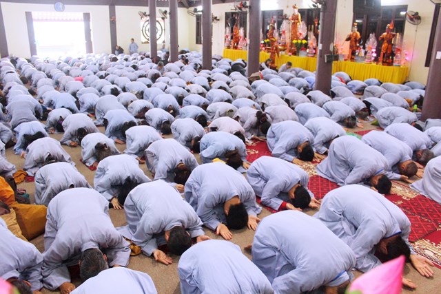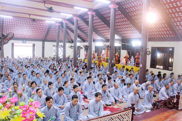 Sau hơn 1 giờ đồng hồ được Thượng tọa chia sẻ những lời vàng ngọc, đại chúng đã thấu hiểu để có một đời sống an lạc, ngay từng giây từng phút ta cần giữ chánh niệm, làm thanh tịnh ba nghiệp Thân – Khẩu – Ý của mình để có được cái tâm hoan hỷ chấp nhận và chuyển hóa những nghiệp xấu đã tạo trong quá khứ. Người Phật tử phải tỉnh giác, biết học và thực hành giáo lý nhà Phật để từ bỏ và không vướng vào những khổ đau từ Tham – Sân – Si đem lại. Giữ trọn vẹn 5 giới cấm của người Phật tử, biết nuôi dưỡng và tăng trưởng thân tâm, nương nhờ vào oai lực của Phật pháp để có được một cuộc sống an lạc, hạnh phúc.