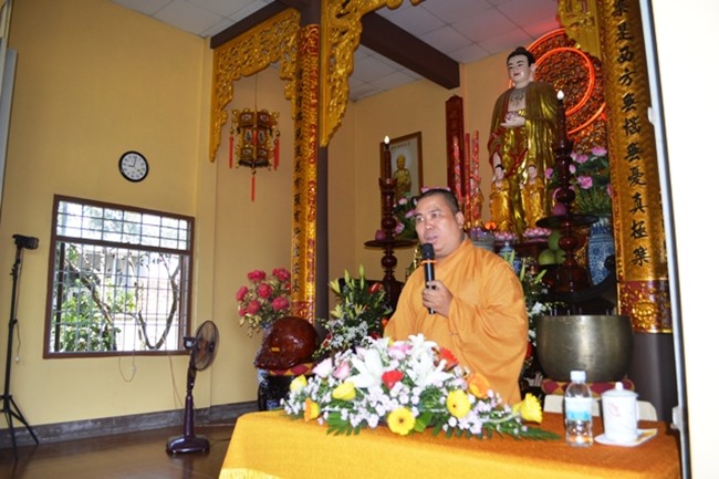 Khai mạc khóa tu TT.Thích Thiện Thông tán thán công đức quý Phật tử trong 8 năm qua, hằng tháng cứ đến ngày mùng 9 âm lịch về chùa tu học, tụng kinh, nghe pháp. Thượng tọa khuyến tấn đạo tràng tinh tấn, chuyên cần, nhất tâm niệm Phật cầu sinh Tịnh độ. Thượng tọa cũng thông báo về chương trình Khóa tu lần sau vào ngày mùng 9 tháng 7 âm lịch, nhân mùa Vu Lan báo hiếu đạo tràng sẽ tổ chức Pháp hội bách tăng, Lễ cúng dường trai tăng, lễ Bông hồng cài áo, nhân mùa An cư kiết hạ của chư Tăng PL.2561.