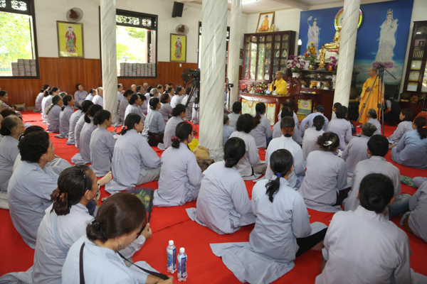 ĐĐ. Thích Thông Đạo – UV HĐTS GHPGVN, Phó trưởng ban kiêm Chánh thư ký BTS GHPGVN Tp Đà Nẵng, Trú trì chùa Bà Đa đã quang lâm truyền Bát Quan Trai giới cho các giới tử tham dự khóa tu.