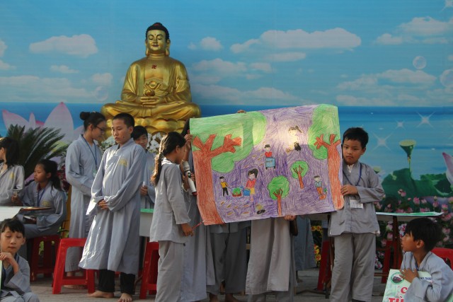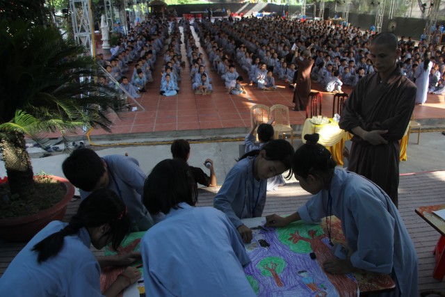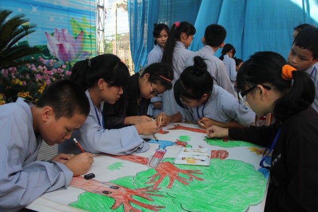 Với chuỗi hoạt động từ sâu lắng đến vui bổ ích – ngày tu thứ hai đã đem đến cho gần 1000 bạn thiện sinh rất nhiều an lạc và niềm vui như thi vẽ tranh, thi văn nghệ, tìm hiểu về phòng chống ma túy.