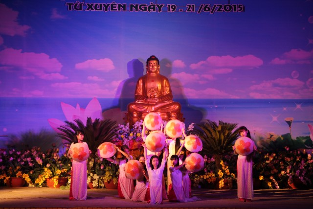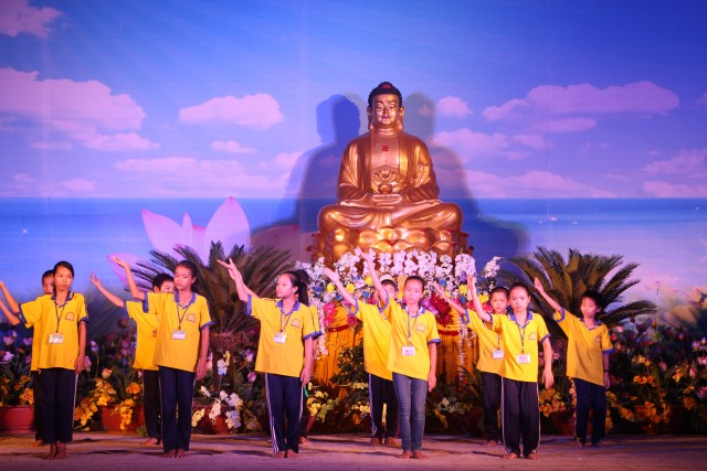 Khóa tu sen hồng: “Những búp sen tươi đẹp, vươn lên giữa bùn lầy, ngày mai sen hé nở, Làm tươi đẹp cuộc đời, Búp sen trông chắc khỏe, lại mạnh mẽ thanh cao, ai cũng quý làm sao, Búp sen hồng tươi thắm, Thưong nhiều lắm em ơi! Hãy sống trọn tình người, như hoa sen tươi đẹp, Sen là vị Bồ tát, Nguyện hiến dâng cho đời, những hương sắc thanh cao, cho cuộc đời tươi đẹp, Thương nhiều lắm em ơi! Búp sen hồng tươi thắm, tu học ở Từ Xuyên, trong mùa hè nắng đẹp”.