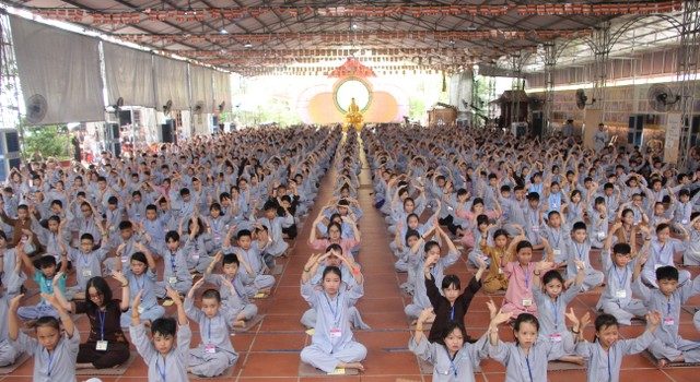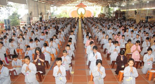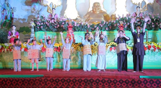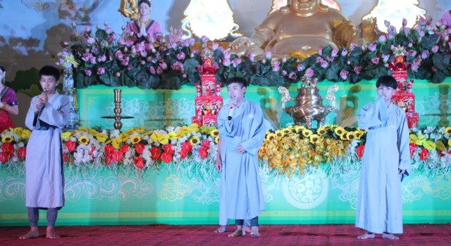 Buổi tối cùng ngày, các bạn trẻ được đón xem chương trình “Tìm kiếm tài năng chùa Từ Xuyên” với các tiết mục biểu diễn hết sức sôi động cùng sự cổ vũ nhiệt tình của quý Thầy, các anh chị tình nguyện viên và gần 1000 bạn đồng tu.