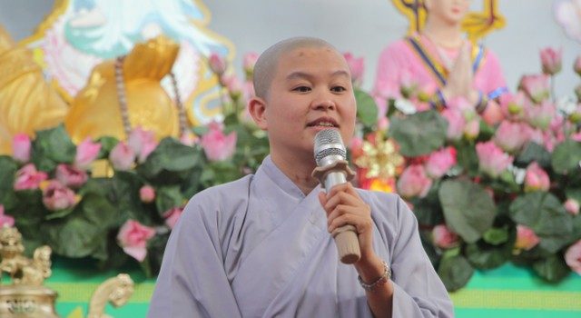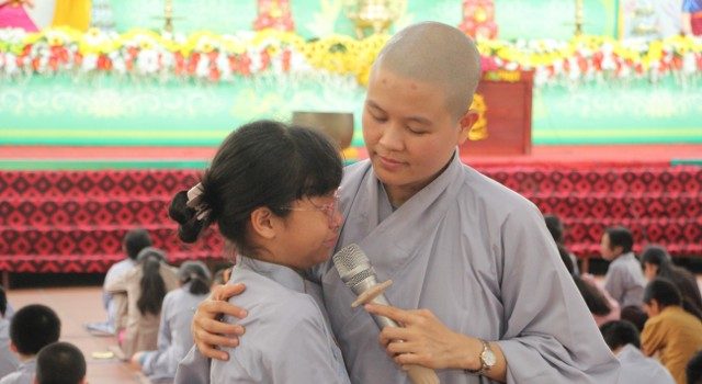 Sau thời tụng kinh Vu Lan, SC.Thích Nữ Diệu Tấn, đã giao lưu và chia sẻ câu chuyện về bà mẹ nghèo, tật nguyền đi xin từng đồng tiền, bát gạo về nộp cho nhà trường để con đi học. Với tâm sự về thời thơ ấu, đặc biệt là tình yêu thương con vô bờ bến của người mẹ của mình đã giúp Sư cô vượt qua lưỡi hái tử thần. Các bạn trẻ đã khóc và xúc động khi nghĩ về những vụng dại, nông nổi bồng bột của tuổi trẻ khi làm cha mẹ buồn lòng. Đặt tay vào trái tim mình, đối trước Phật đài trang nghiêm, các bạn trẻ đã sám hối lỗi lầm và cầu nguyện cho cha mẹ ở nhà luôn được bình an hạnh phúc.
