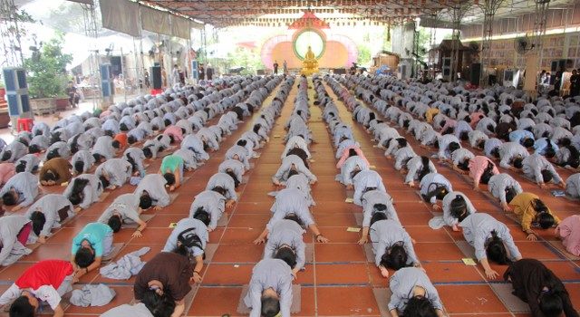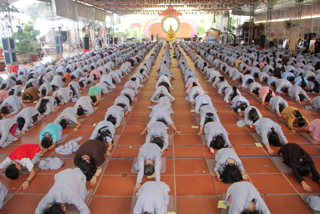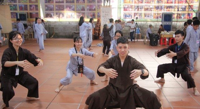 Với chuỗi hoạt động từ sâu lắng đến vui bổ ích – ngày tu thứ hai đã đem đến cho gần 1000 bạn thiện sinh rất nhiều an lạc và niềm vui như học khí công – lạy Phật, thi văn nghệ, quy y Tam Bảo, giao lưu cùng SC.Diệu Tấn và ca sỹ Trần Duy Hưng.