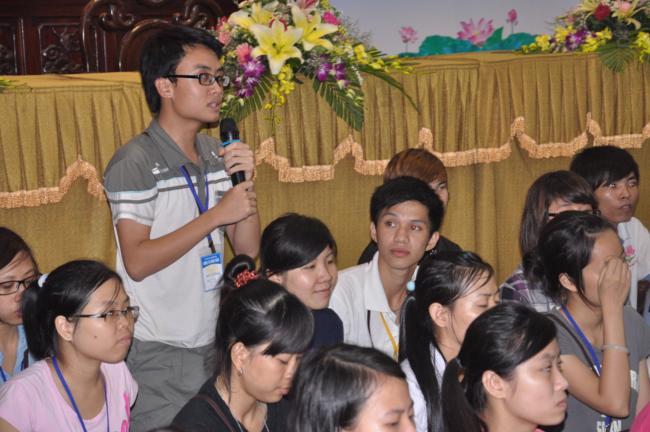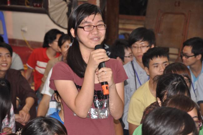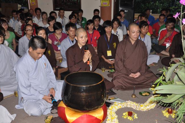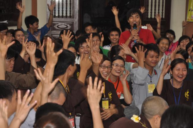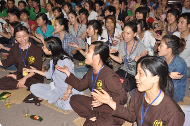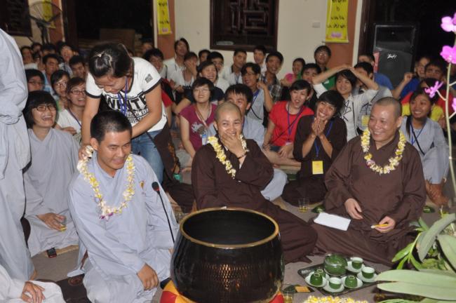 Thậm chí có 2 bạn gái nói rất ngộ nghĩnh nhưng quả là lời chia sẻ đầy ý nghĩa: “Bình thường con rất sợ sấm sét. Mỗi lần nghe tiếng sét đánh là con như hoảng lên. Nhưng hôm nay ngồi trong không gian này, con không hề sợ sệt mà ngược lại con thấy rất bình yên. Con nghĩ rằng đó là nhờ vào sức mạnh của quý Thầy, của bè bạn và sức mạnh ấy có được từ tình thương bao la của người con Phật biết tu thân, hành thiện”.