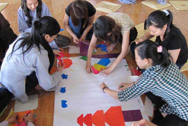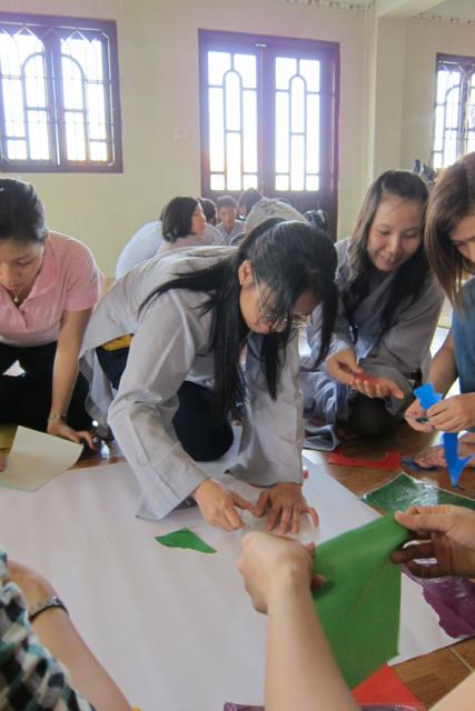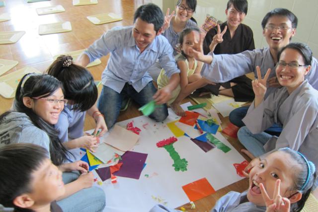 Buổi chiều, các bạn thảo luận nhóm và chơi trò chơi “ Những người thợ khéo léo”, trò chơi là sử dụng giấy thủ công và các dùng tay xé giấy để vẽ nên những bức tranh sinh động. Buổi thảo luận nhằm xoay quanh những chủ đề như: Phật Giáo Và Môi Trường, Đạo Pháp Và Dân Tộc, Phật Đản. Các chủ đề ấy giúp cho các bạn trẻ có cái nhìn về mối quan hệ giữa Phật giáo và các vấn đề xã hội như: Sự đóng góp của Phật giáo về Môi trường, sự gắn bó giữa đạo pháp và  dân tộc, ý nghĩa ngày Đản Sinh.