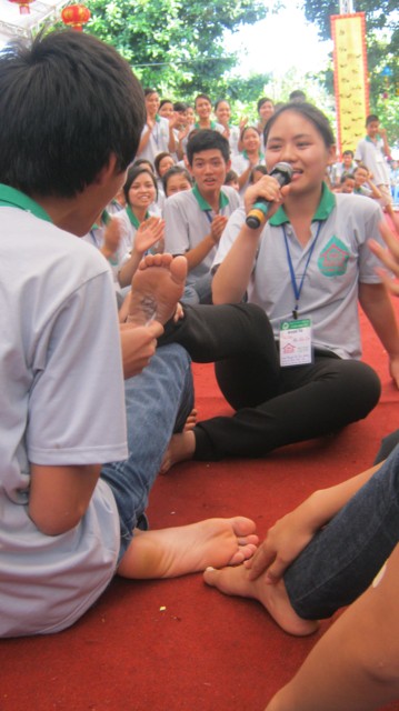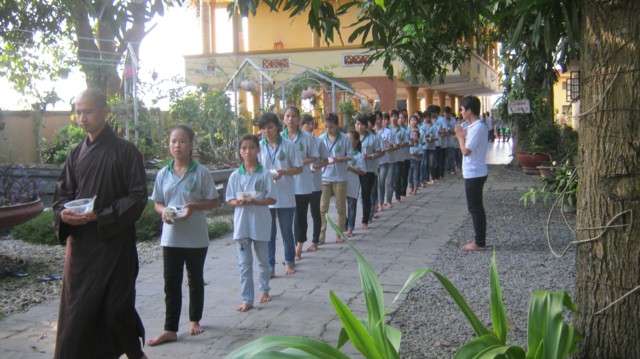 Ngoài các hoạt động nghe pháp, kinh hành, tái hiện "khất sĩ thọ thực", các bạn trẻ còn được tham gia các sinh hoạt vui mà học, thiền trà…