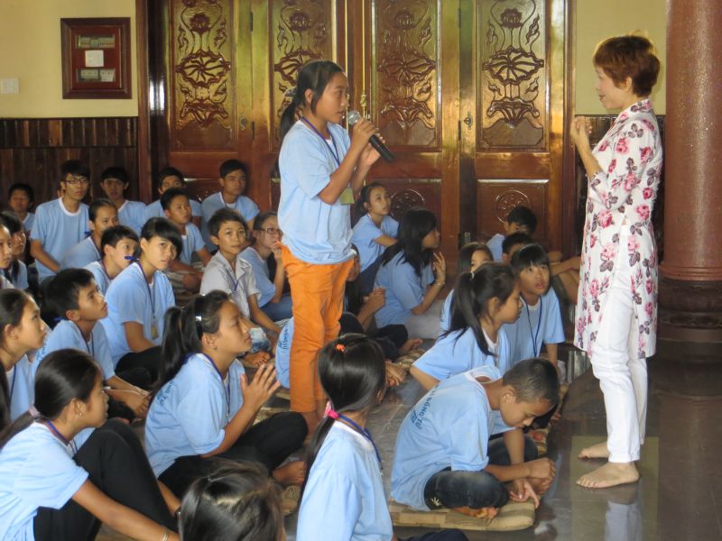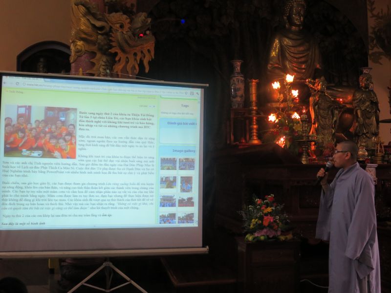 Sau giờ nghĩ trưa, khóa tu đến với buổi nói chuyện của PGS. Tiến Sĩ Phan Thị Thu Hiền – Trưởng bộ môn Hàn Quốc Học trường ĐH. Khoa học Xã hội và Nhân văn TP. HCM. Cô mang đến cho khóa tu “món quà quý nhất của mọi món quà là Phật pháp”. Với nhiều năm kinh nghiệm nghiên cứu và giảng dạy văn học, văn hóa Ấn Độ, cộng thêm sự trải nghiệm cuộc sống, và đặc biệt là sự rúng động tâm linh trong chuyến đi Ấn Độ vừa rồi,