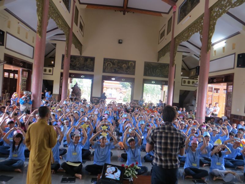 Sau thời kinh đầu ngày, tập thể dục, điểm tâm và điểm tin buổi sáng như thường lệ, các khóa sinh được xem phim hoạt hình và giao lưu với Ca sĩ – Nhạc sĩ Sĩ Luân đến từ TP. HCM. Dưới sự điều điều phối của Đại đức Thích Pháp Như, các bạn trẻ rất hào hứng và vui vẻ chia sẻ với anh Sĩ Luân những trải nghiệm trong cuộc sống và những biến cố đưa anh đến gần hơn với Phật giáo vốn đã quen thuộc từ thuở nhỏ. Những bài hát Phật giáo mà anh thể hiện luôn có sự minh họa hết sức nhiệt tình của các bạn Tình nguyện viên và Khóa sinh. Vì vậy anh đã rất quyến luyến với khóa tu khi phải từ biệt các em, trở về thành phố để tiếp tục công việc đã sắp xếp trước.