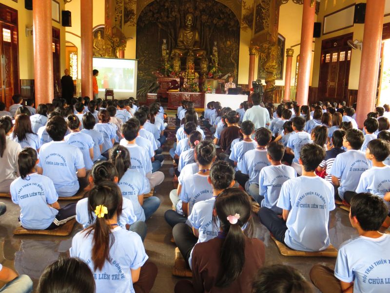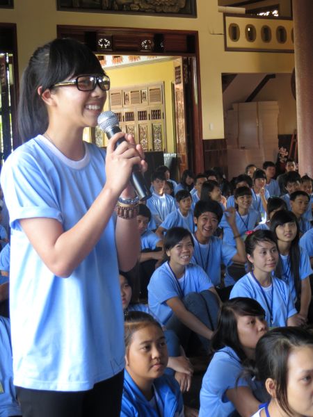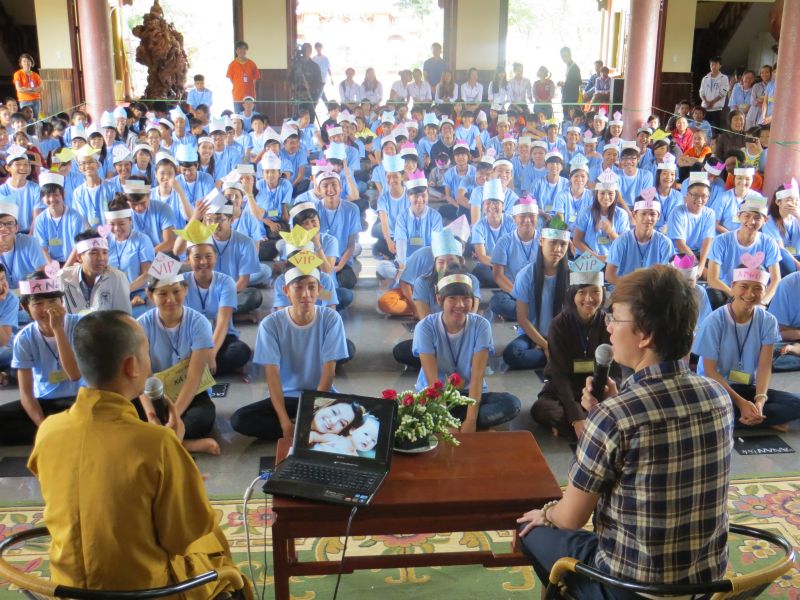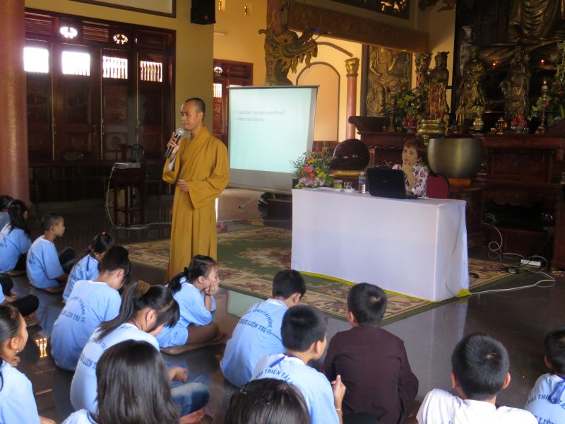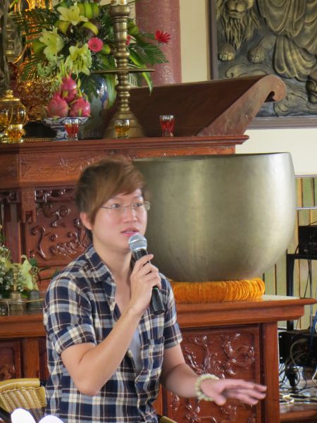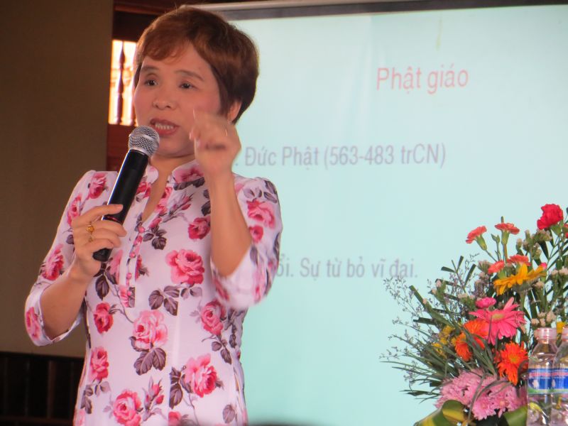 Cô đã có buổi nói chuyện về đạo Phật hết sức sâu sắc và ý nghĩa. Cuộc đời đức Phật Thích Ca Mâu Ni và những giáo lý căn bản của đạo Phật như Tam Bảo, Tứ đế, Ngũ uần, Bát chánh đạo, Nhân quả, Vô minh, Vô thường,… được cô trình bày dưới góc nhìn khoa học thật rõ ràng và logic. Cuối buổi nói chuyện, cô đúc kết bằng câu nói: “Gieo hành động gặt thói quen, gieo thói quen gặt tính cách, gieo tính cách gặt số phận” và dành thời gian để giải đáp một số thắc mắc cho các bạn Khóa sinh.